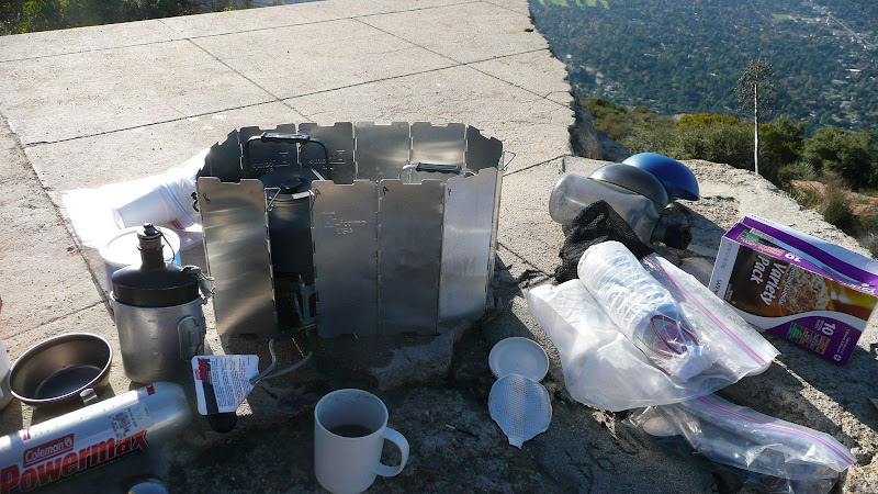 Here's my set up on the mountain top after the crowds have departed. I made hot water for instant oatmeal and instant cocoa for folks. The Xpedition did an admirable job of it.