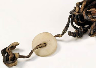 Might be bling, but it has a proud history. Part of Oetzi's kit was a stone bead that held a bundle of thongs together. Might be a fashion accessory, might be a bundle of spare cordage, might be away to transport foraged grass or fowl.