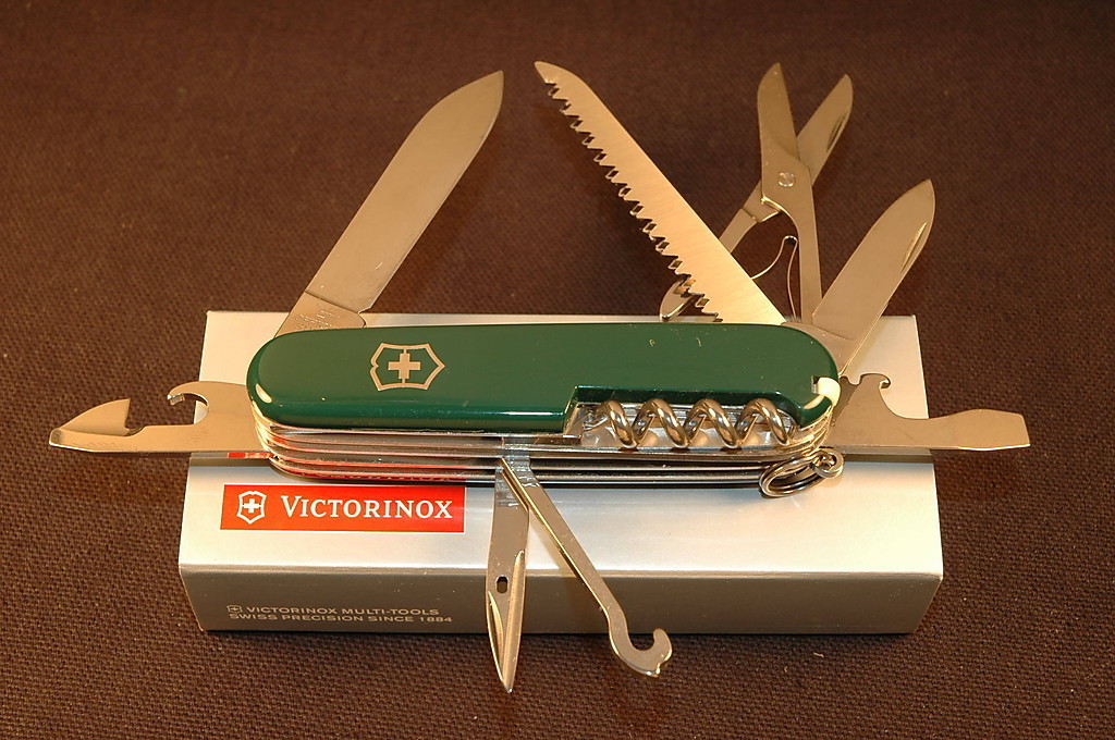 This is the knife I want to carry in the woods.....a Victorinox Huntsman. I have a red one, but I really like this hunter green model. In reality, I always carry either a Leatherman Wave or a Leatherman Super Tool 200 because the tools are much more robust than most folding knives. I like the pliers on the LM, and I like the tweezers and toothpick on the Vics.